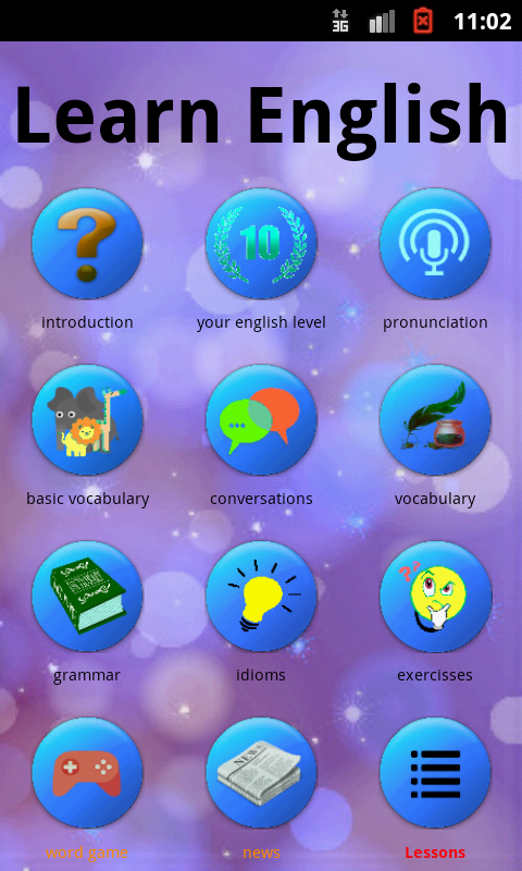 Learn English fast and easy with this amazing app! From begginers to advanced, it has everything! The application is 100% free and it has over 130 lessons designed to make you learn English in no time. Is intuitive, easy to use and hard to forget.