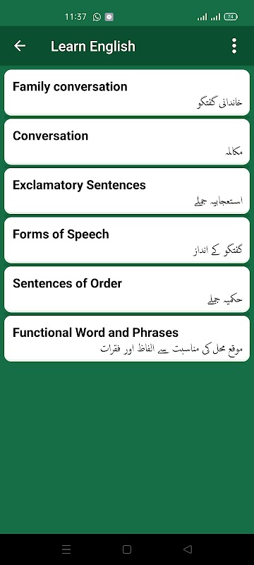 Phrases category further contains 6 categories with learn english in audio with examples which are following