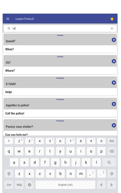 Learn French Language - French Translator is one of the many French learning apps for Android devices. However, this app is extremely handy and efficient. It contains hundreds of words and phrases for travelers and beginners who want to learn French phrases and speak French like a native.