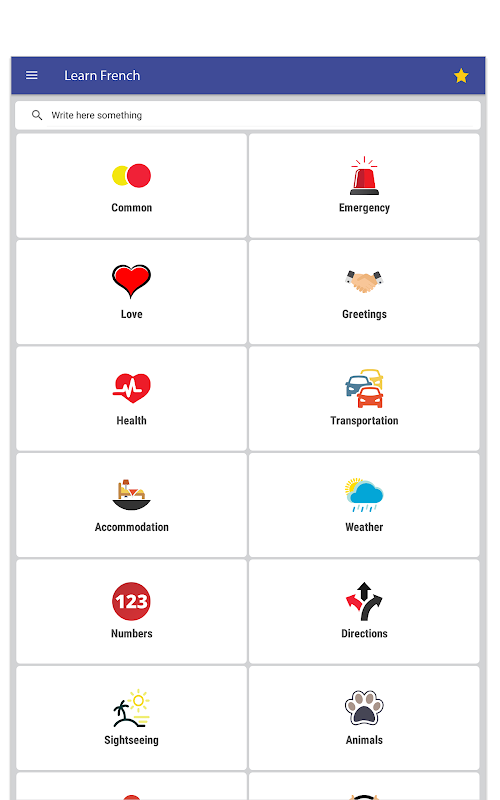 Learn French Language app with essential expressions, phrases, and sentences in the French language.
