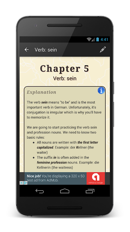 This German course for beginners consists of several lectures. Each lecture contains some grammar, some basic vocabulary and many exercises. Learning German is more than just learning individual phrases by heart. You also need to be acquainted with the minimum grammar. Also it is crucial to know that most simple verbs to construct simple sentences. This App will help you to get to first level of German (A1) according the common European reference (MRER).