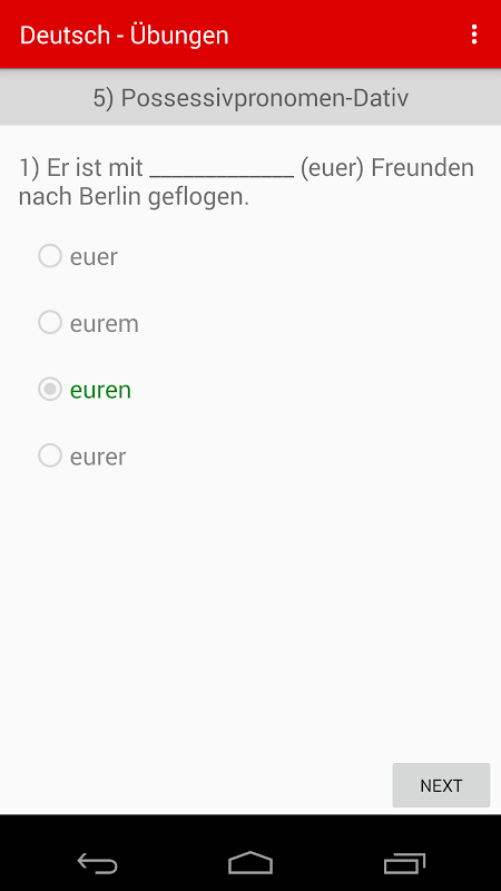 Our new version has 3 more exercises to practice GENITIVE as well, making our Learn German - German Grammar Test : Dative + Accusative app a complete guide for German declination.
