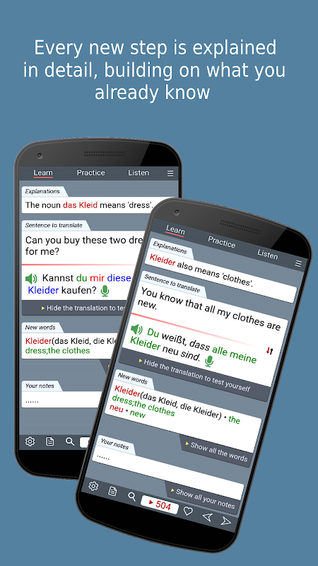 Achieve German fluency easily and naturally with an app created by a teacher with a lot of teaching experience.