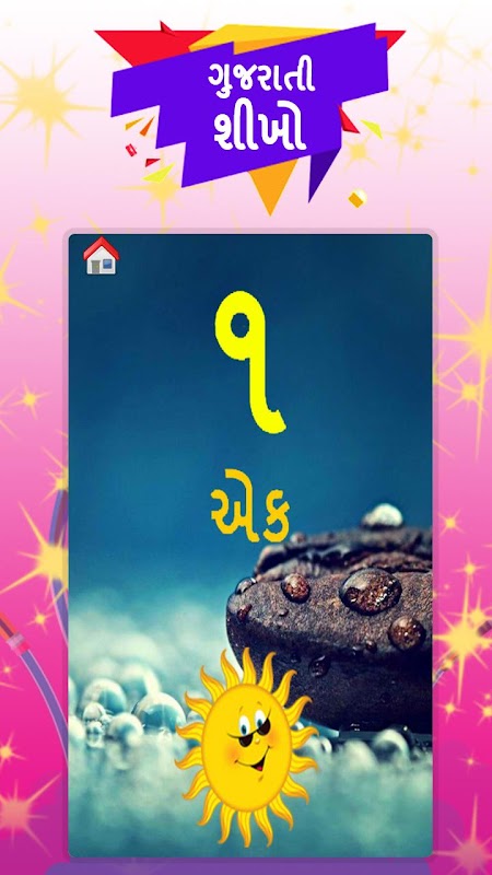 This app shows various section like Gujarati Mulakshar, Gujarati numbers, Gujarati Swar , Shapes and Color in Gujarati for kids.