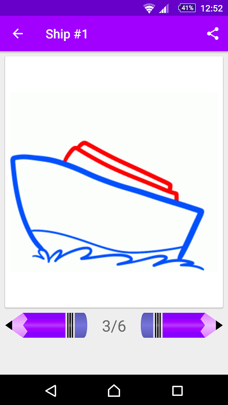 Our App provides a large collection of drawings including: Easy Ship, Ship For Kids, Pirate Ship, Mayflower and Titanic.