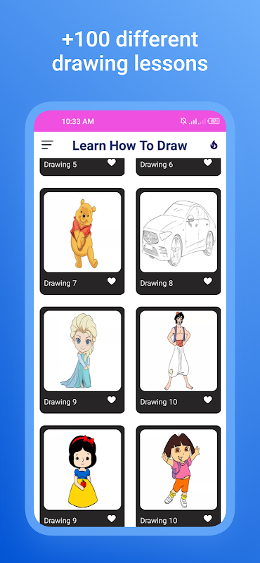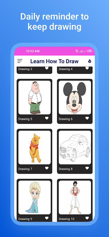 Discover the power of creativity with "Learn How to Draw," the must-have drawing application on Play Store! Packed with an array of amazing features, this app is designed to help you master the art of drawing while providing a fun and interactive experience. With easy-to-follow tutorials, step-by-step instructions, and a wide range of drawing tools, you'll be amazed at what you can create!
