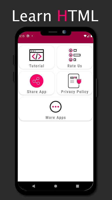 Learn HTML & Web Development is free Application will teach you how to use HTML to create webpages or websites. Our step-by-step guide teaches you the basics of HTML and how to build your first website. That means how to layout an HTML page, how to add text and images in HTML page, how to add headings and text formatting at HTML page, and how to use tables and so on.