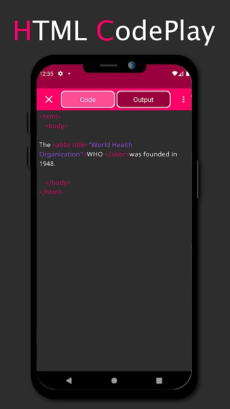Learn HTML with this app for free.
