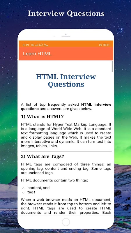 If you are searching for an application to learn HTML programming basic to advance without any programming knowledge . You are at right place. Whether you an experienced programmer or not , this application is intended for everyone who wish to learn the HTML programming.