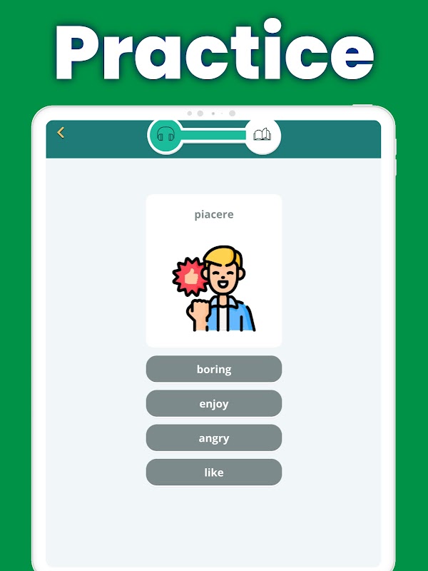 Study Italian words in the app Italian for Beginners A1 Level. Studying Italian has never been so easy and simple!