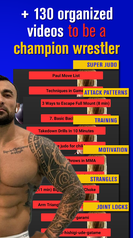 - The app contains a lot of wrestling and judo techniques and submissions.
