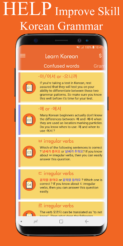 ★ There are nearly 100 lessons in application to help improve your Korean grammar skill