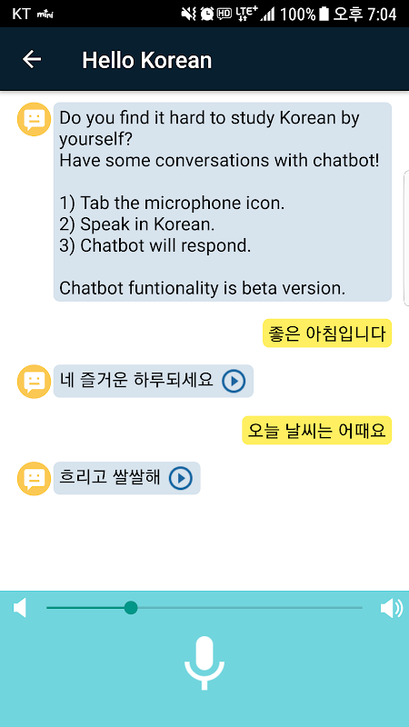 * Because we use Android TTS(Text-To-Speech) to read the Korean and English sentences, the pronunciation isn’t as good as natives.