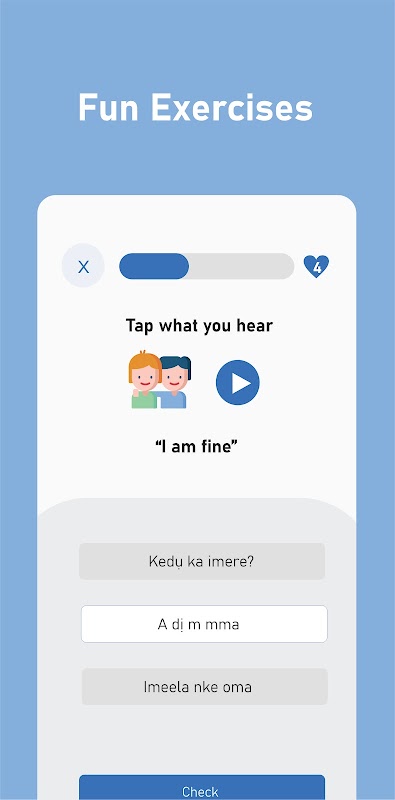 An interactive language learning app with a focus on African languages.