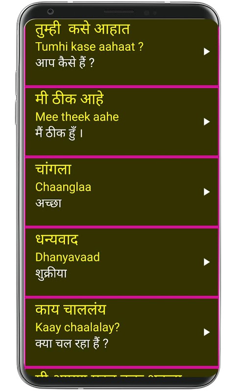 5. The app contains all frequently used Marathi words and sentences to help you understand and talk Marathi in different situations of life. ⛱️✈️🚙🚑