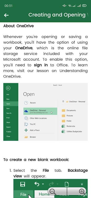 - Excel Basic: Includes 4 lessons such as: Getting started with Excel, Understanding OneDrive, Creating and Open Wordbooks.....