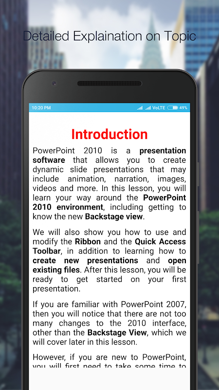 This app discusses all the basic as well as advanced topics of PowerPoint!