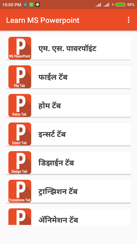 Learn MS PowerPoint app will help you increase your knowledge about MS PowerPoint. Using this app you will be able to learn how to use MS PowerPoint application in computer. This app includes information about how to use different tabs in MS PowerPoint. This app will definitely help you to increase your knowledge of MS PowerPoint.