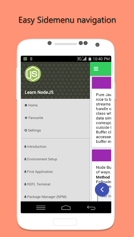 This app is your pocket book to learn Node js , Once installed you can access this app without net connection , this is a offline app. We have set of features to improve your learning process.