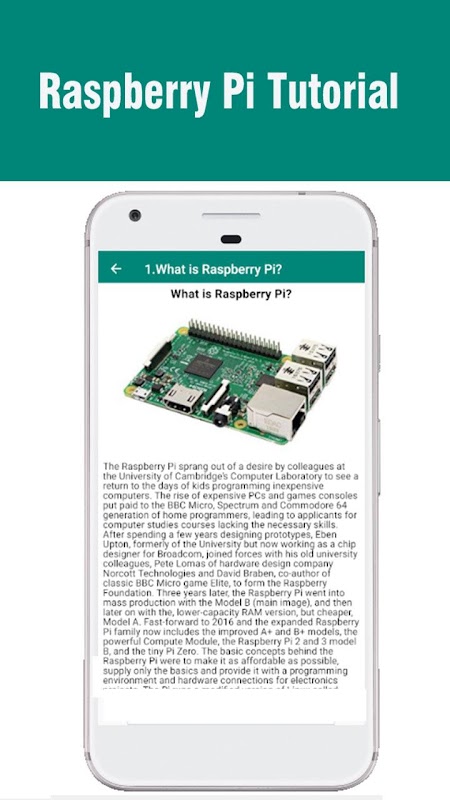 The Raspberry Pi is a series of small single-board computers developed in the United Kingdom by the Raspberry Pi Foundation to promote the teaching of basic computer science in schools and in developing countries. This App is a free Raspberry Pi course to help you learn Raspberry Pi basic