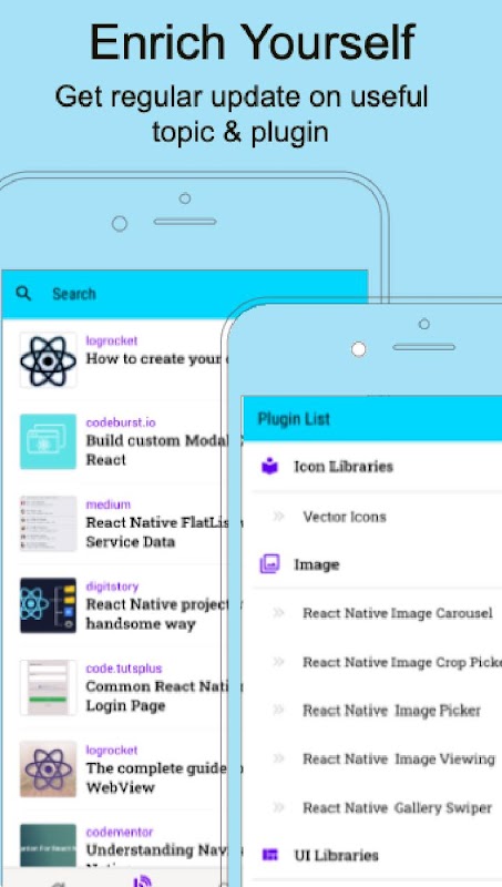 This App has all the major topics of React Native with the easiest Code Examples. We are constantly updating this App with every new major React Native release and adding more code snippets and Examples.
