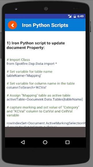 This application is designed to enhance your knowledge on Tibco Spotfire tool which is known as one of the best data visualization tool in diverse industry. Iron Python scripts demonstrated in the app equipped with best practices and current best approaches. These optimized scripts can used by anyone to implement their customized data visualization analysis. This app is very useful for below individuals: