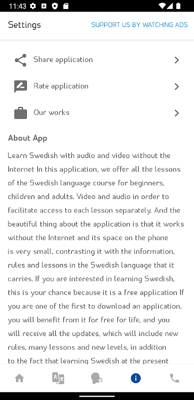 And the beautiful thing about the application is that it works without the Internet and its space on the phone is very small, contrasting it with the information, rules and lessons in the Swedish language that it carries.