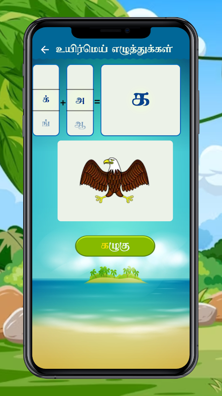 1. Tamil Alphabets (தமிழ் எழுத்துகள்) – Tamil Alphabets identification with Pronunciation teaching by voice playback and identifying by pictures. Tamil Alphabets contained Uyir ezhuthukal, Mei ezhuthukal, UyirMei ezhuthukal & Ayutha ezhuthu. Each element of Tamil words had the option of displaying each letter with a Picture & Tamil word pronunciation, Teach Tamil words to your kids.