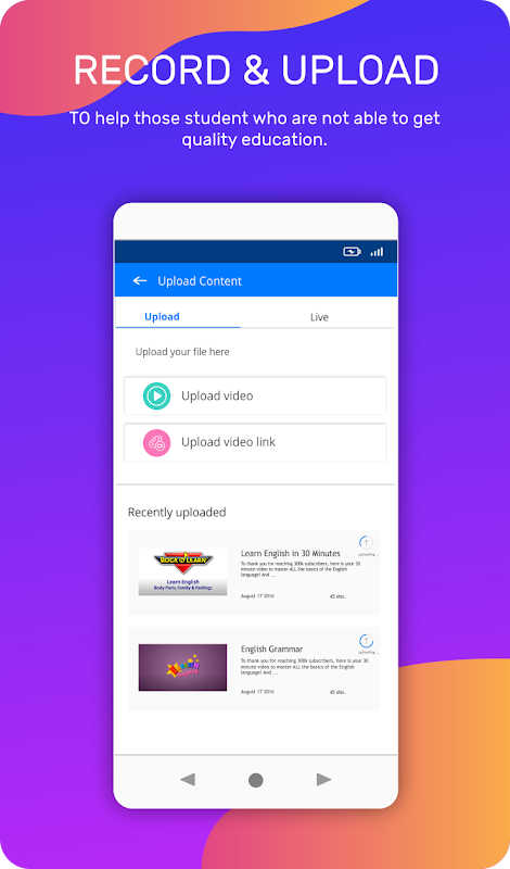The teachers can upload the video lessons of their subjects, at the platform and after a successful review of the video, the video will be made LIVE on the app, and thousands of students can learn from them.