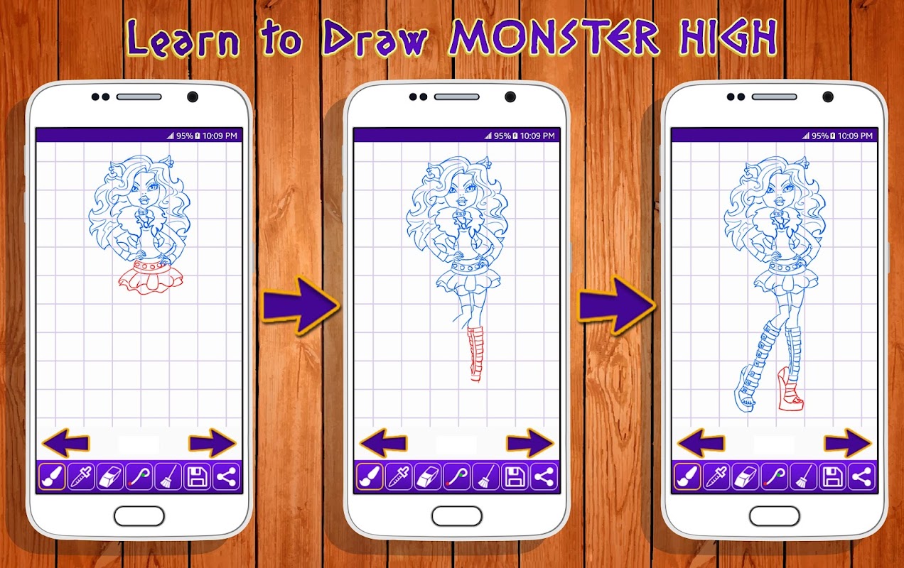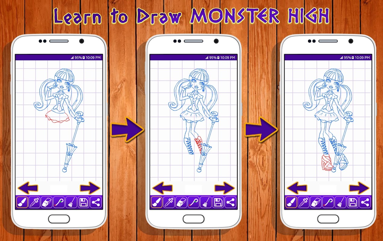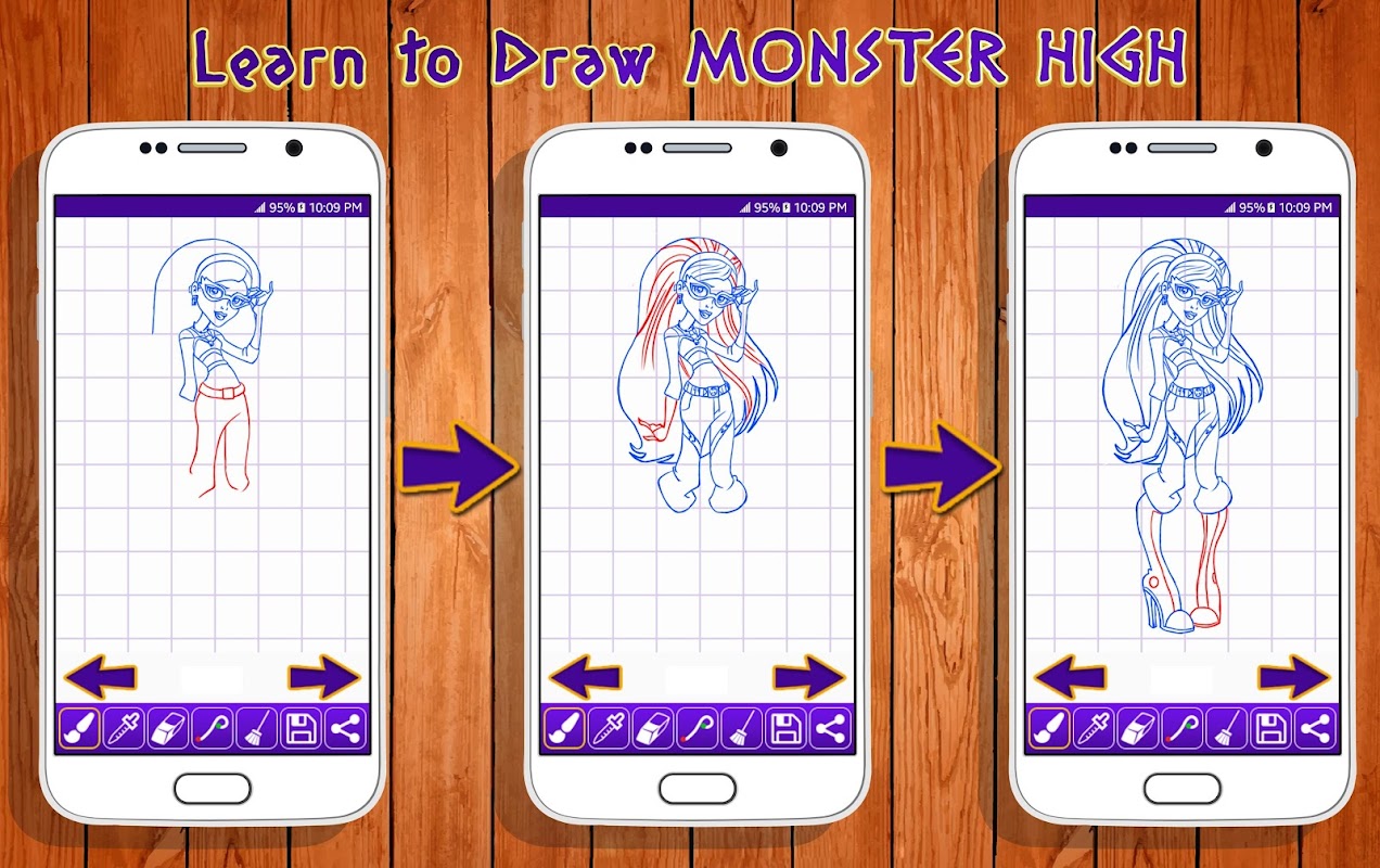 It also will show you how to draw an adorable Monster High Cartoon. This easy step by step drawing tutorial app will guide you through all of the steps. Happy Drawing :)