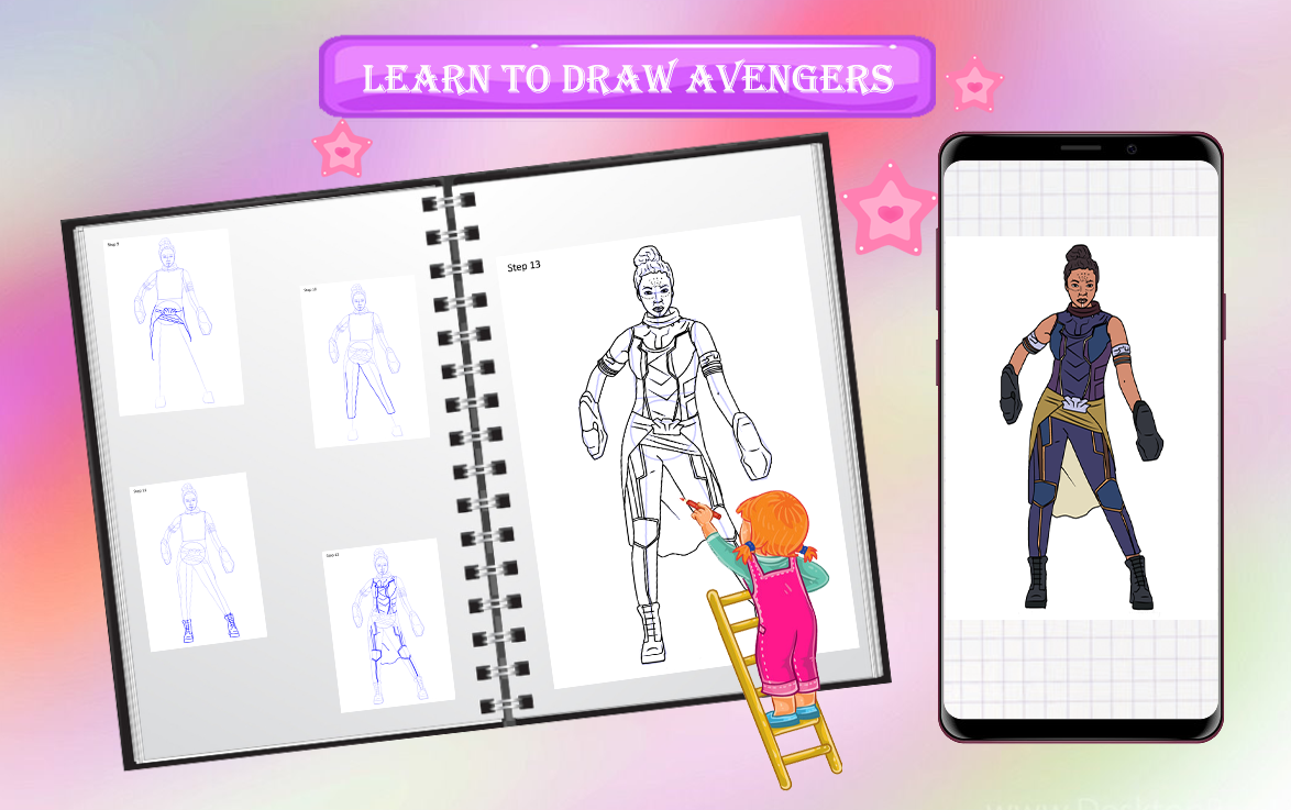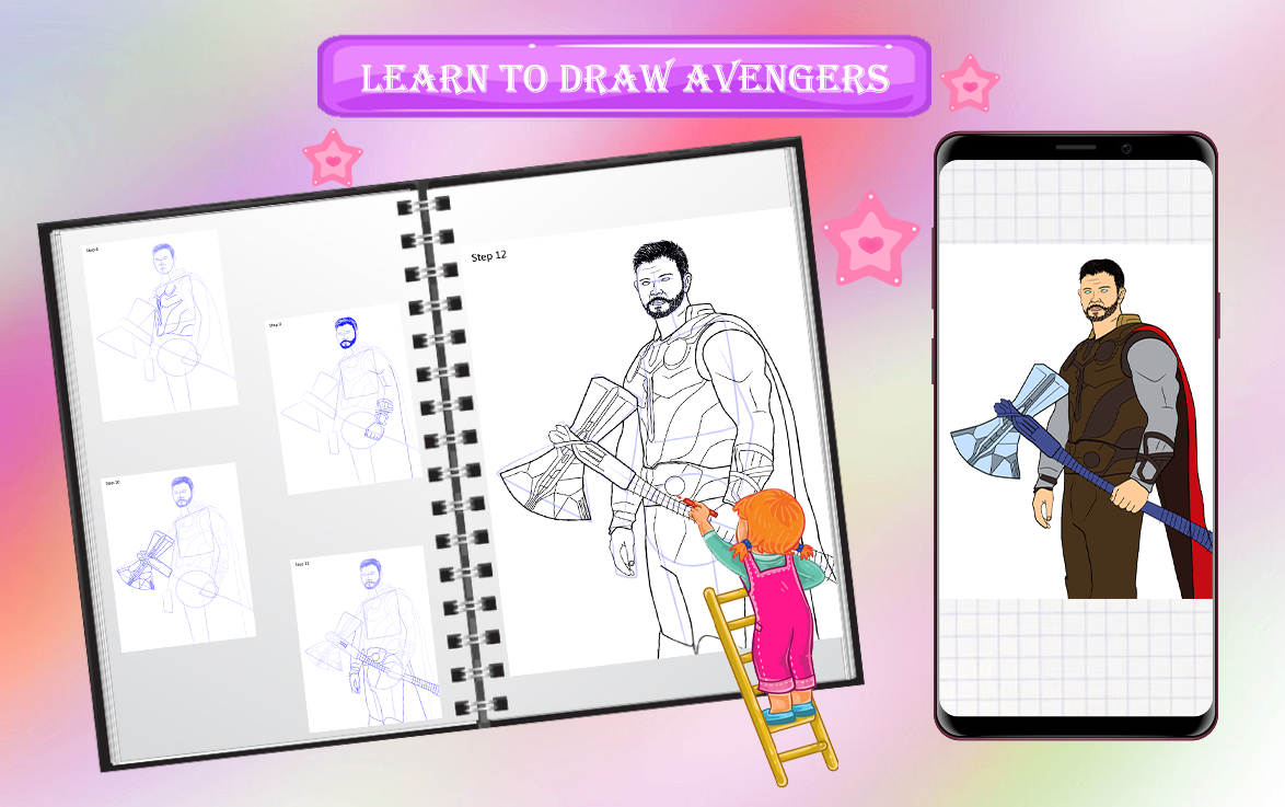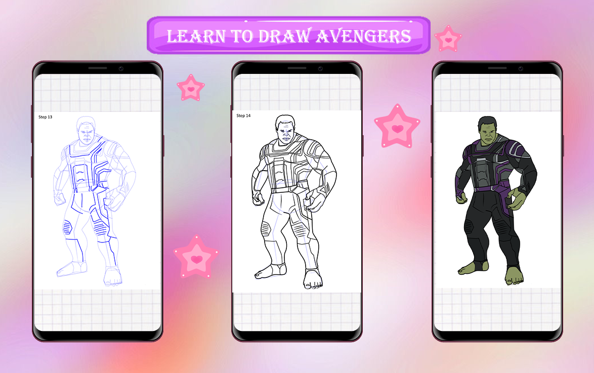 How to Draw app is made for Super Heros Characters fans, and it is unofficial. All content in drawing Super Heros Characters is collected from the internet which is public content. The content in coloring Avengers Characters app is not affiliated with by any company or brand. Draw Super Heros Characters app is mainly for entertainment and for all fans to enjoy Drawing.