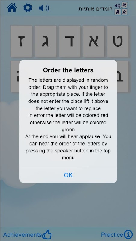 The demo version contains only the first ten letters of the Hebrew alphabet