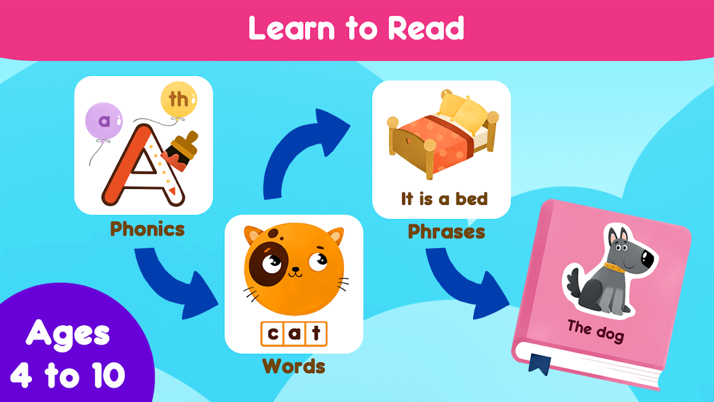 - Phonics Lessons help your child progress from recognizing letters to reading simple books. Features like phonics for kids and ABC games make every activity easy to follow.