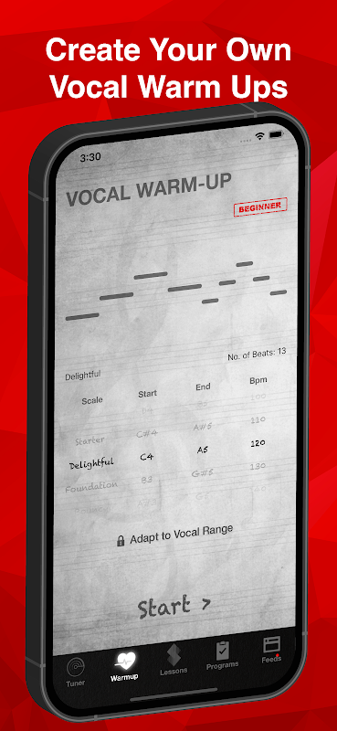 A new feature released < User-Definable Vocal Warm Up > - For all the singers, for the first time, you can create your own signatured vocal warm up and sing along with note guidance!