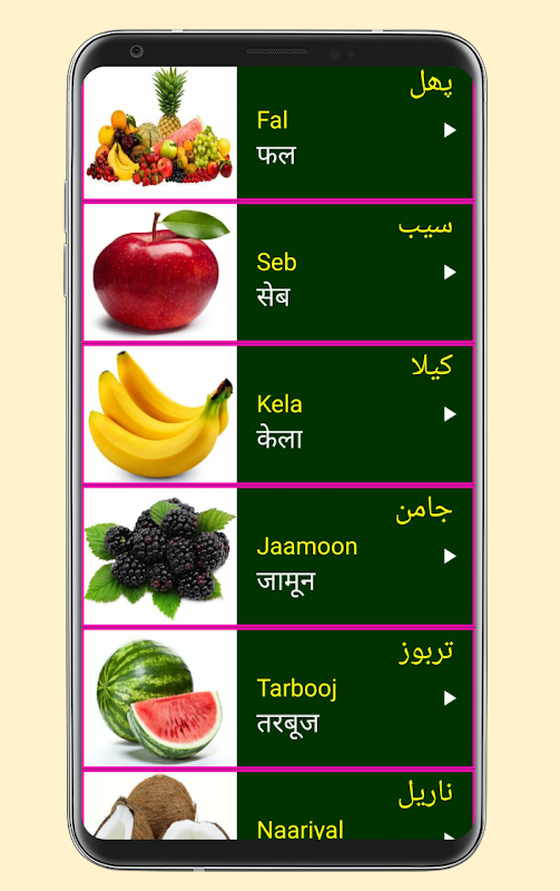 2. Each Urdu word has a clear image 📸🖼️ and audio pronunciation 🎵🔊 to make Learning Urdu via Hindi Easy.