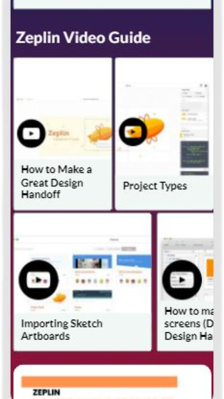 Zeplin App Guide also presents video tutorials and learn your favorite design software. Thera are many videos