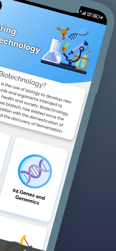 You've come to the right place if you're seeking for a simple biotechnology app. This software will present you with the most significant and educational lessons. This biotechnology app will provide you with accurate knowledge that includes definitions, classifications, and examples. With this app, you may carry your biotechnology book everywhere and learn at any time.