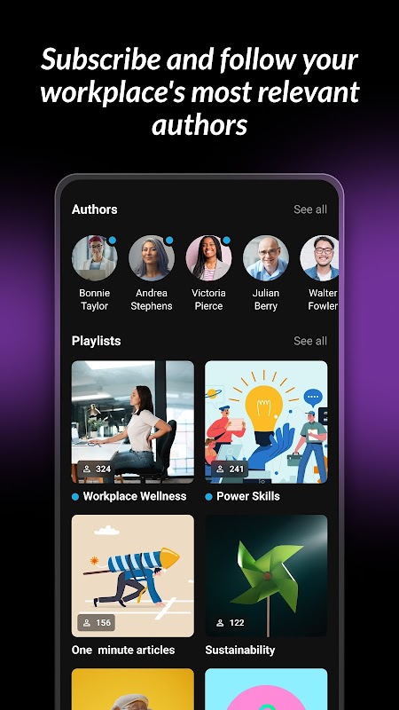 Enter the credentials provided by your organization and boost your know-how! This tool allows you to create, share, and connect through tailored articles, videos, documents, podcasts, infographics, and more.