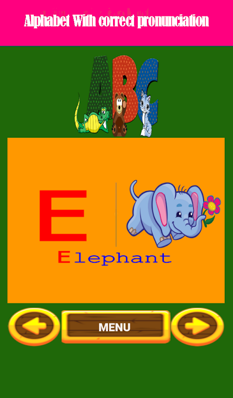 in learn english kids you can learning kids abc , colors, animals name , animals sound , numbers and play matching game to improve his memory .