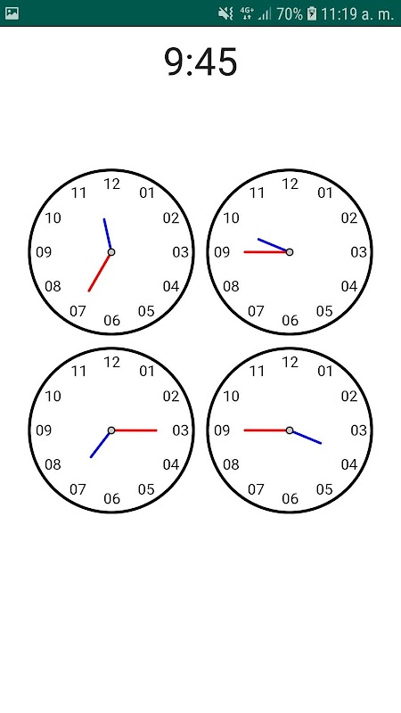 Application to learn to read the hours and minutes