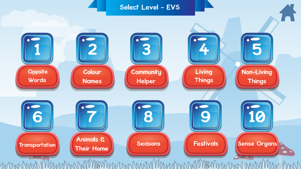 1. English contains many levels to select and learn like Capital Letter (A to Z), Small Letter (a to z), Vowels & constants, Action words & emotions, Family words and especially in family words different types of family words, Sight words, Stories and Flash card.