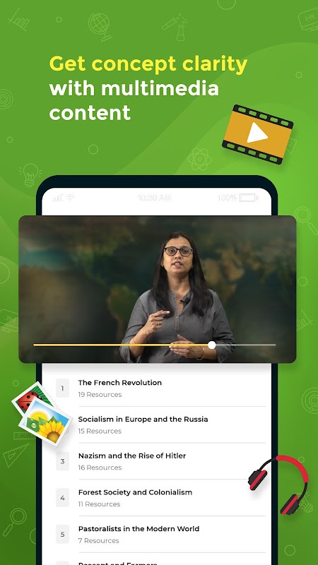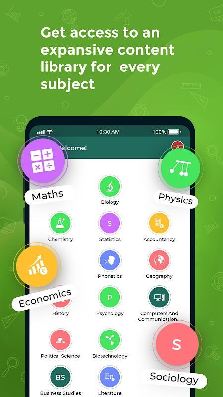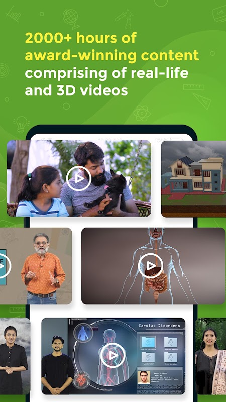 App has three main sections - Learn, Practice and Quizzer. It covers grades 1 - 12 across major educational boards in India such as CBSE, ICSE, State Boards & a wide range of subjects like Maths, Physics, Chemistry, Biology, Social Studies, English along with grammar and literature, and more.