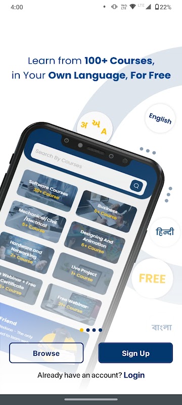 LearnVern app allows students to learn 75+ Courses for free all taught in Hindi and other Indian languages like English, Bangla, Tamil, Telugu, Gujarati, Marathi. Free Course Tutorials are taught by expert trainers of Computer Science, Mechanical, Civil, Business, Graphic Design, Spoken English with Government Certificate.