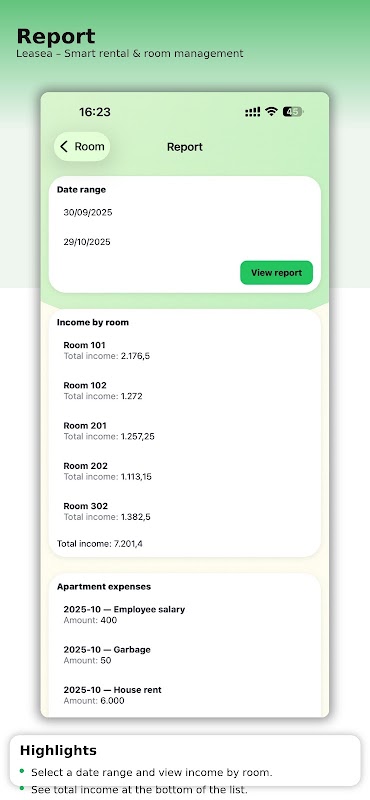 Smart reminders for settlements; monthly revenue/expense reports.