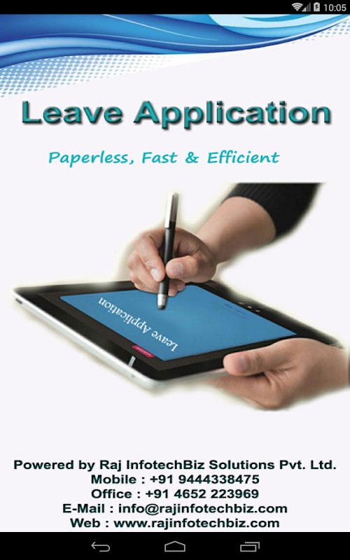 The Leave Application facilitates a better interactive, intuitive GUI based Leave and Permission Appllication submission experience by Android based mobile users. It can be used by any employee. It is very simple and free.