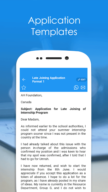 App offers more than 5000 business letters/applications and documents formats available for mobile users. Easy to search your keyword to find your required letter/application without Internet in various categories and sub-categories.
