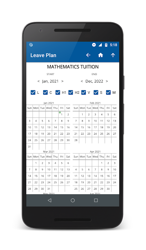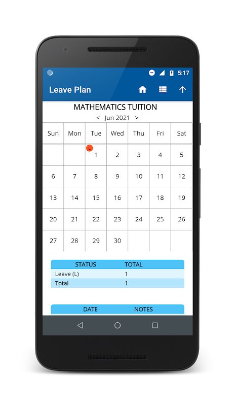 Leave Plan app allows to store the leave details