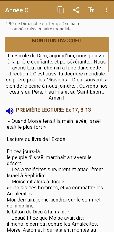 Application that works without internet. Completely Offline .This application is the digital version of the Lectionary of Sundays and Catholic holidays and weekdays.