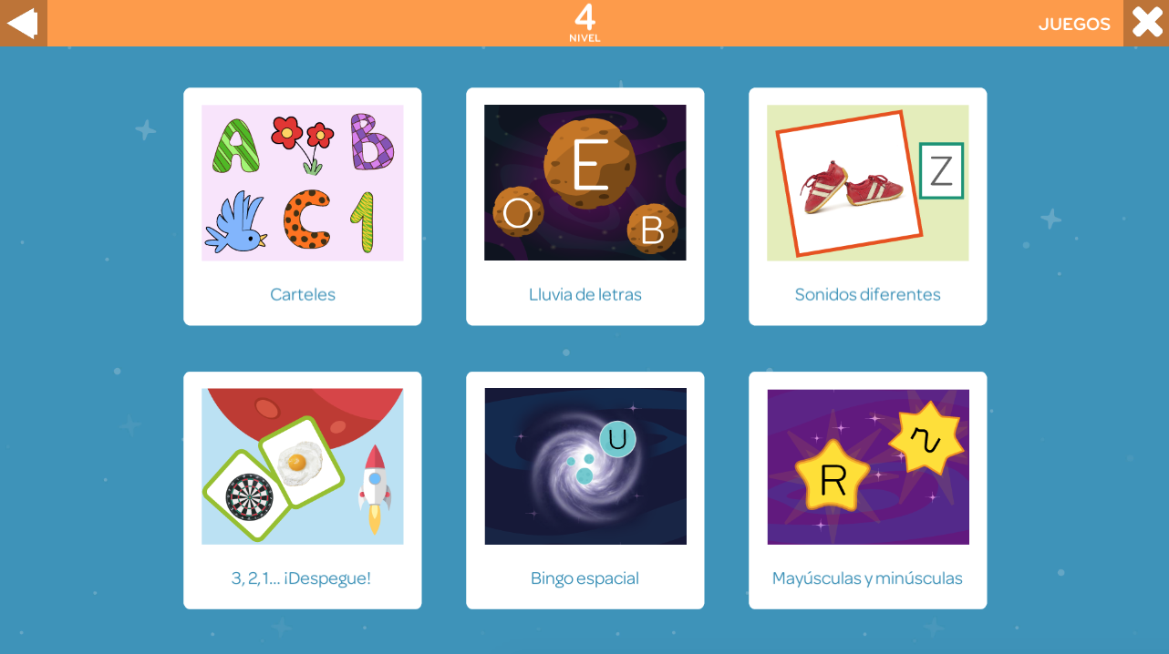The Lecto + app is divided into 6 levels. Its objectives are to motivate, reinforce and extend literacy learning in a dynamic way. It includes: