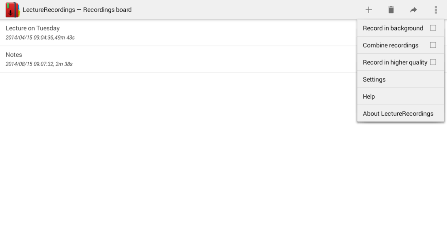 LectureRecordings is an Android app for audio recording, mainly while taking handwritten notes using LectureNotes.